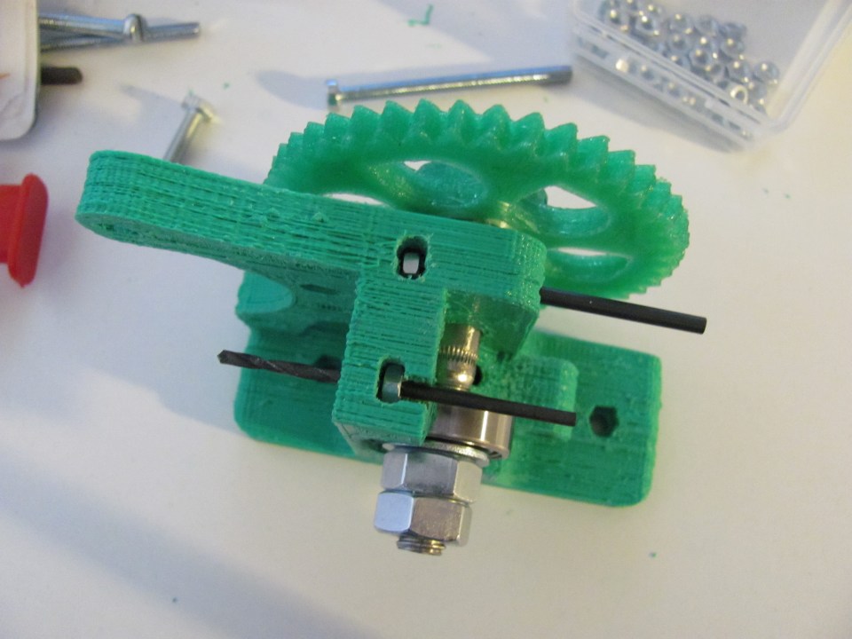 Fitting the M3 nuts into the top of the extruder.