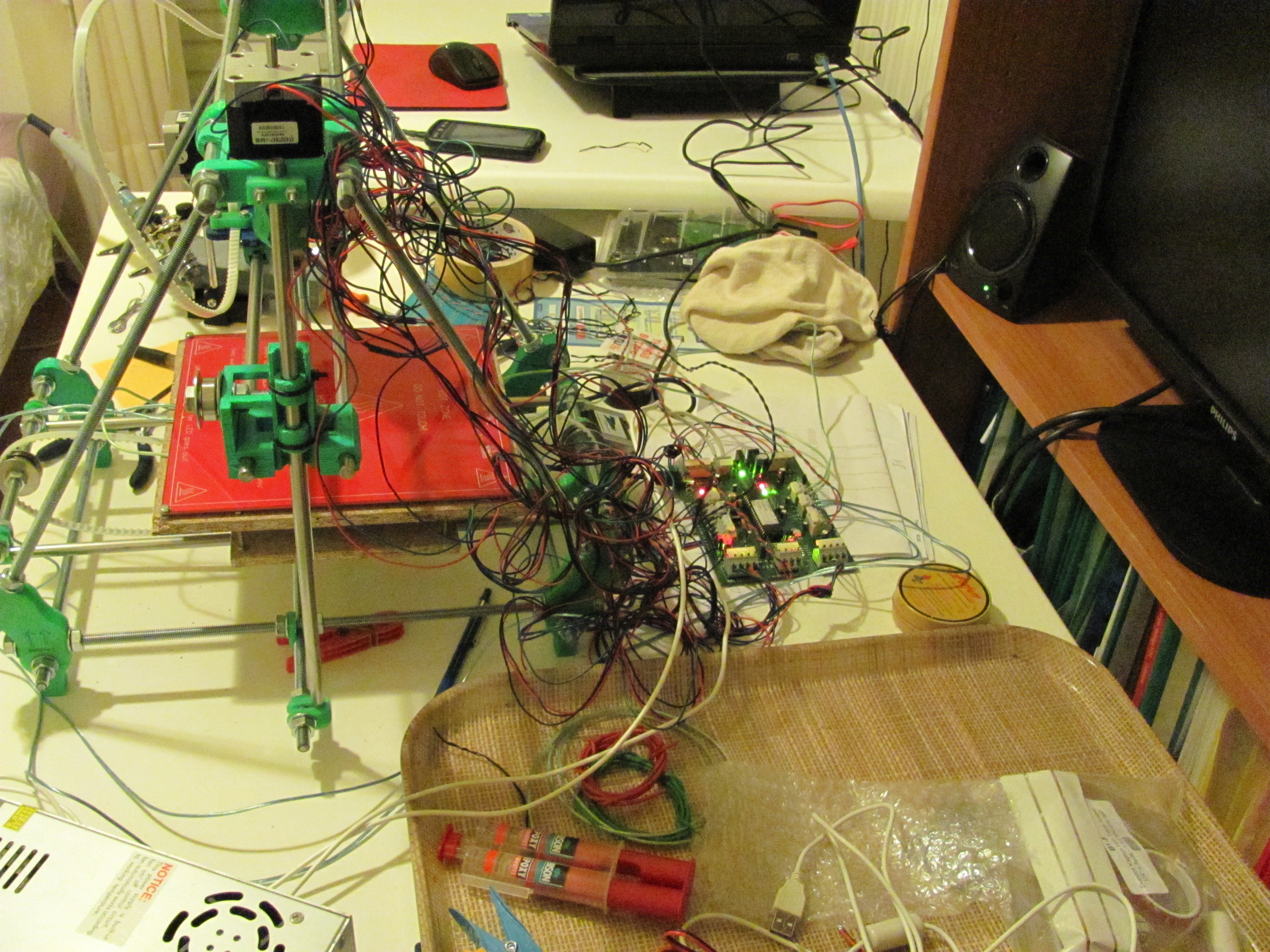 Initial electronics setup Next → Testing the electronics for the first time. The birdsnest of wires needs sorting out before the axes can be moved to their full range!