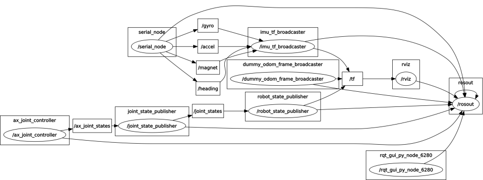 ROS graph, with debug info shown.